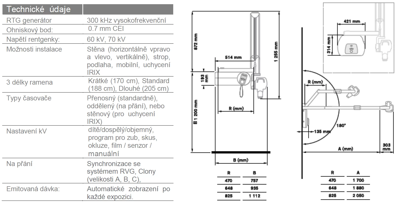 články zobrazovacího řetězce včetně RTG lampy, všechny dentální výrobky jsou součástí